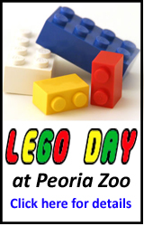 place on Saturday at the Peoria Zoo (located at 2320 N Prospect Rd. in Peoria) from 11 am - 2 pm. Bring you favorite Lego master to the Zoo to build, play, and grow their love of Legos with a zoo spin. Admission is $9 for adults and $6 for kids 2 - 12: members and ages under 2 are free. For more information call 309-681-3508 or visit www.peoriazoo.com |