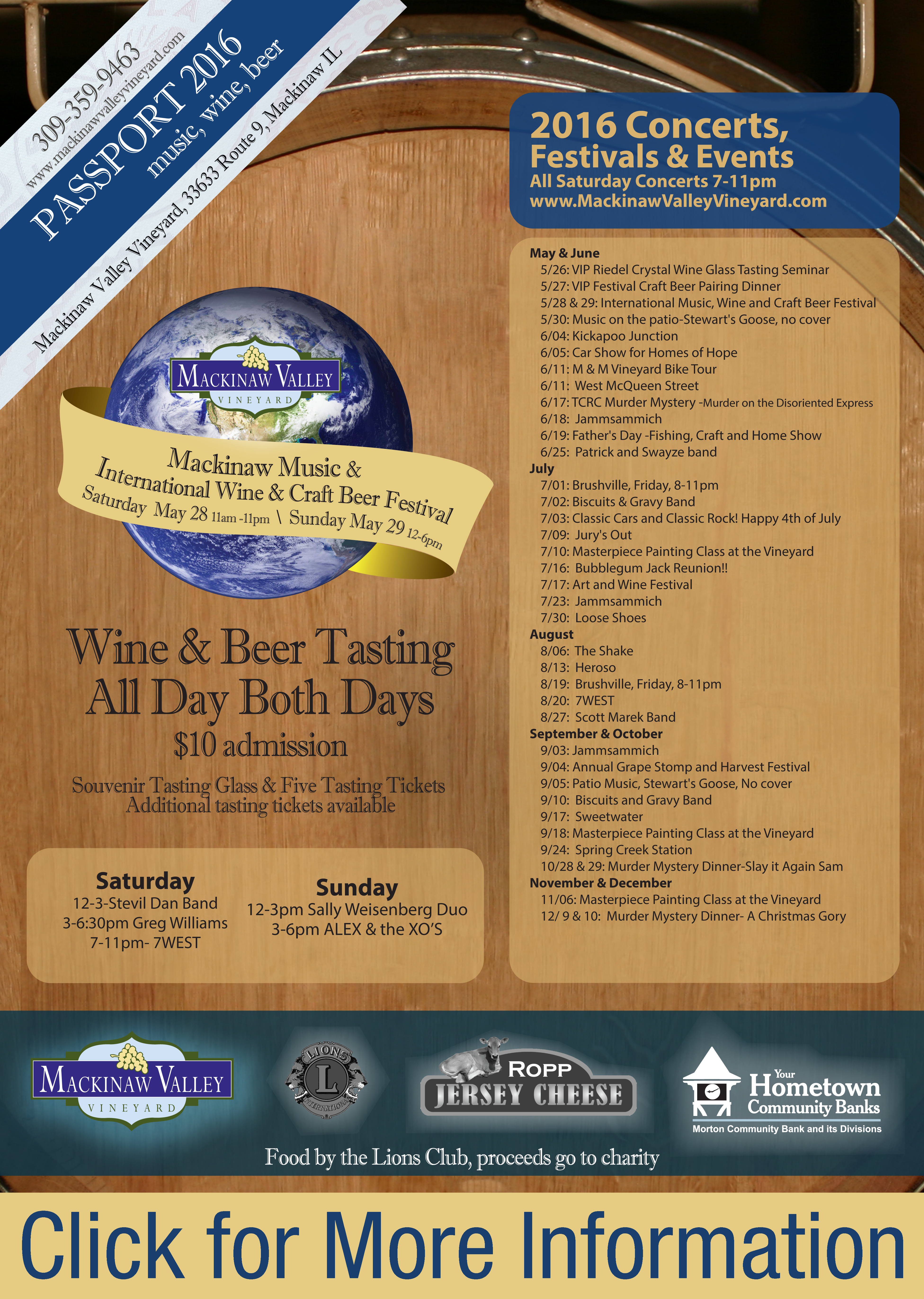 Mackinaw Music and International Wine & Craft Beer Festival: May 28 & 29!