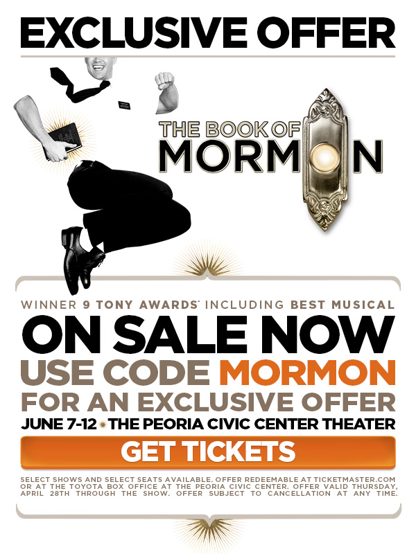 EXCLUSIVE OFFER for The Book of Mormon Opening Tomorrow at the Peoria Civic Center!