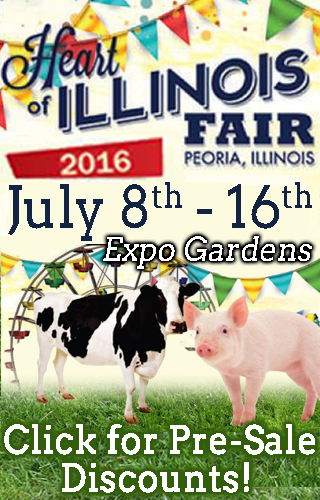 The 2016 Heart of Illinois Fair opens with a preview tonight (Thursday) at Expo Gardens (located at 1601 West Northmoor Road in Peoria) and runs through Saturday, July 16 with gates open from 10 am - 10 pm each day. Attractions include a carnival, live entertainment, a bags tournament, a kiddie tractor pull, a petting zoo, truck and tractor pulls plus the Axe Women Loggers of Maine. General admission is $10 for ages 13 & over, $5 for children aged 6 - 12 and
