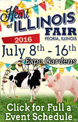 The 2016 Heart of Illinois Fair continues tonight (Thursday) at Expo Gardens (located at 1601 West Northmoor Road in Peoria) through Saturday with gates open from 4 - 11 pm on weekdays and Noon - 11 pm on weekends. Attractions include a carnival, live entertainment, a bags tournament, a kiddie tractor pull, a petting zoo, truck and tractor pulls plus the Axe Women Loggers of Maine. General admission is $10 for ages 13 & over, $5 for children aged 6 - 12 and