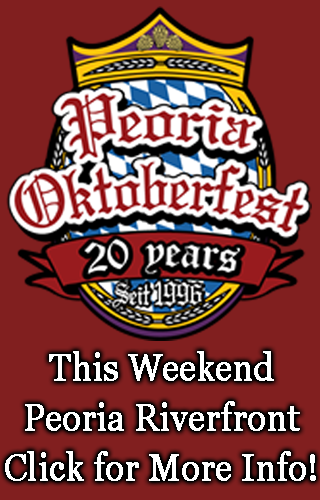 celebrate its 20th anniversary at Festival Park and the CEFCU Center Stage (located at 200 NE Water St. in Peoria) from 5 - 11:30 pm on Friday, Noon - 11:30 pm on Saturday and 11 am - 5 pm on Sunday. Admission is $7 before 5 pm and $10 after 5 pm. Showcasing German entertainment, food, beer and wine, children's activities, carnival rides and a German Heritage Tent display complete with a genealogy search, for more information visit https://www.facebook.com/peoriaoktoberfest |