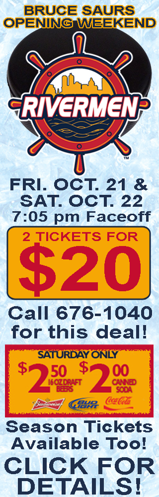 The Peoria Rivermen will take on the Huntsville Havoc at the Peoria Civic Center Arena on Friday & Saturday beginning at 7 pm each night during their 2016-17 season opening weekend. Tickets are $18 and $21 for lower bowl tickets and $11 and $13 for upper bowl tickets in advance or $1 more the day of the game and are on sale now at the Peoria Civic Center, all Ticketmaster locations, by phone at 309-676-1040 or online at www.Ticketmaster.com Get 2 tickets for $20 for either night by calling 309-676-1040. For more information about the Rivermen, visit www.Rivermen.net