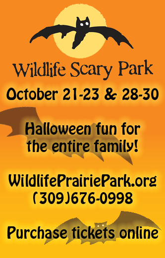 will take place at Wildlife Prairie Park (located at 3826 N Taylor Rd. in Hanna City) from 5 - 9 pm on Friday, from 2 - 10 pm on Saturday and from 2 - 8 pm on Sunday. Featuring a giant Trick-or-Treat Trail, haunted hayrack rides and the "Train-sylvania Express". Animal encounters and the "not-so-scary" version will run prior to 7 pm each night. Admission is $10 or $8 for WPP members or free for ages 2 & under and are available online at www.wildlifeprairiepark.org/tickets This year, a "Fun Zone" featuring activities like Knockerball, Laser Tag, Pumpkin Chuckin' and more is available for an additional $5. For more information, call 309-446-3395 or visit www.wildlifeprairiestatepark.org |