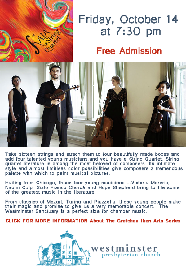 Kaia String Quartet This Friday at Westminster Presbyterian Church!