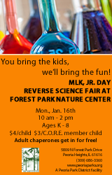 will take place at Forest Park Nature Center (located at 5809 N Forest Park Dr. in Peoria Heights) on Saturday from 9:30 - 10:30 am. Admission is free. For more information, visit www.peoriaparks.org |