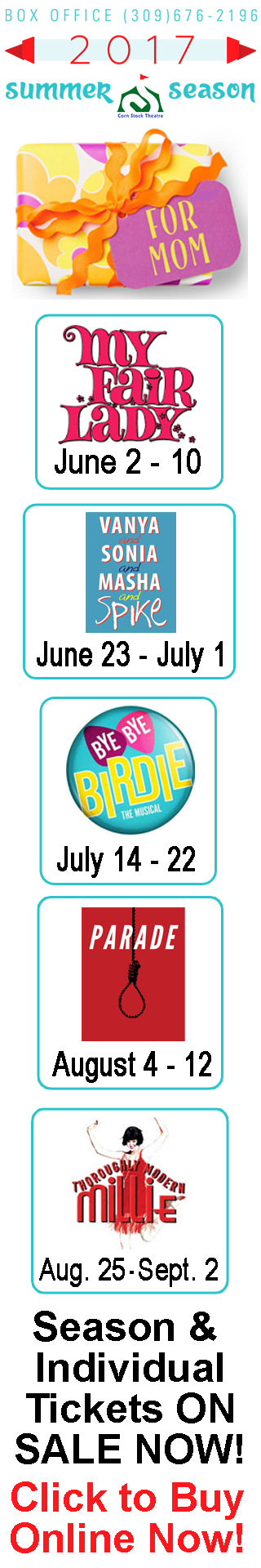 will host its 2017 Craft & Vendor Fair at the theatre (located at 4300 N. University St. in Peoria) on Saturday from 9 am - 3 pm. Featuring crafters and vendors from all over the area, admission is free. For more information, call 309-688-4473 or visit www.peoriaplayers.org |