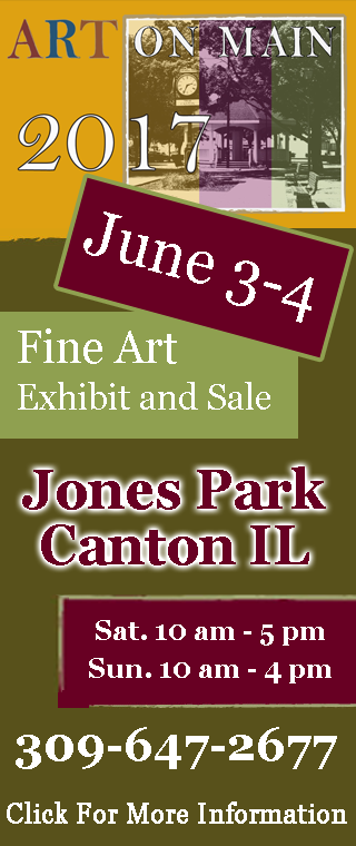 Main Fine Arts Festival will take place at Jones Park (located at 45 East Side Square in Canton) from 10 am - 5 pm on Saturday & 10 am - 4 pm on Sunday. Featuring original art from the Midwestern artists, you can view and purchase paintings, drawings, jewelry, clay, ceramics, photography, glass, sculpture, textiles and woods plus enjoy live music and youth art activities, Admission is free. For more information, call 309-647-2677 or visit www.cantonartonmain.com |