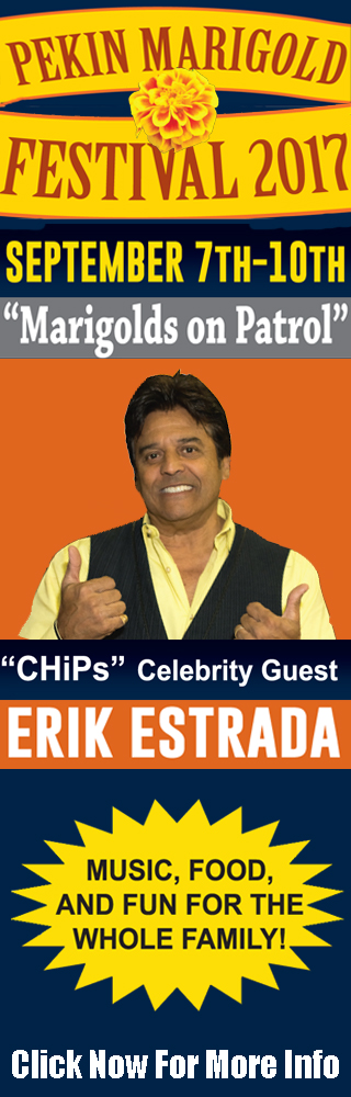 The 2017 Pekin Marigold Festival will take place at Mineral Springs Park in Pekin tonight (Thursday) through Sunday featuring a meet and greet with CHiPs star Erik Estrada, appearances by Miss Marigold, live entertainment, Art in the Park, the 5k Run/Walk, sand volleyball, a rock climbing wall, a chalk art contest, a civic collage, a mobile zoo, a dunk tank, a carnival, a parade, wine tasting, a freaky fast