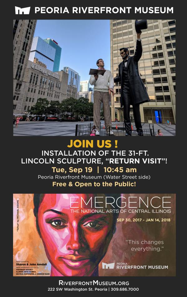 Lincoln Sculpture "Return Visit" Installation on Tuesday at the Riverfront Museum