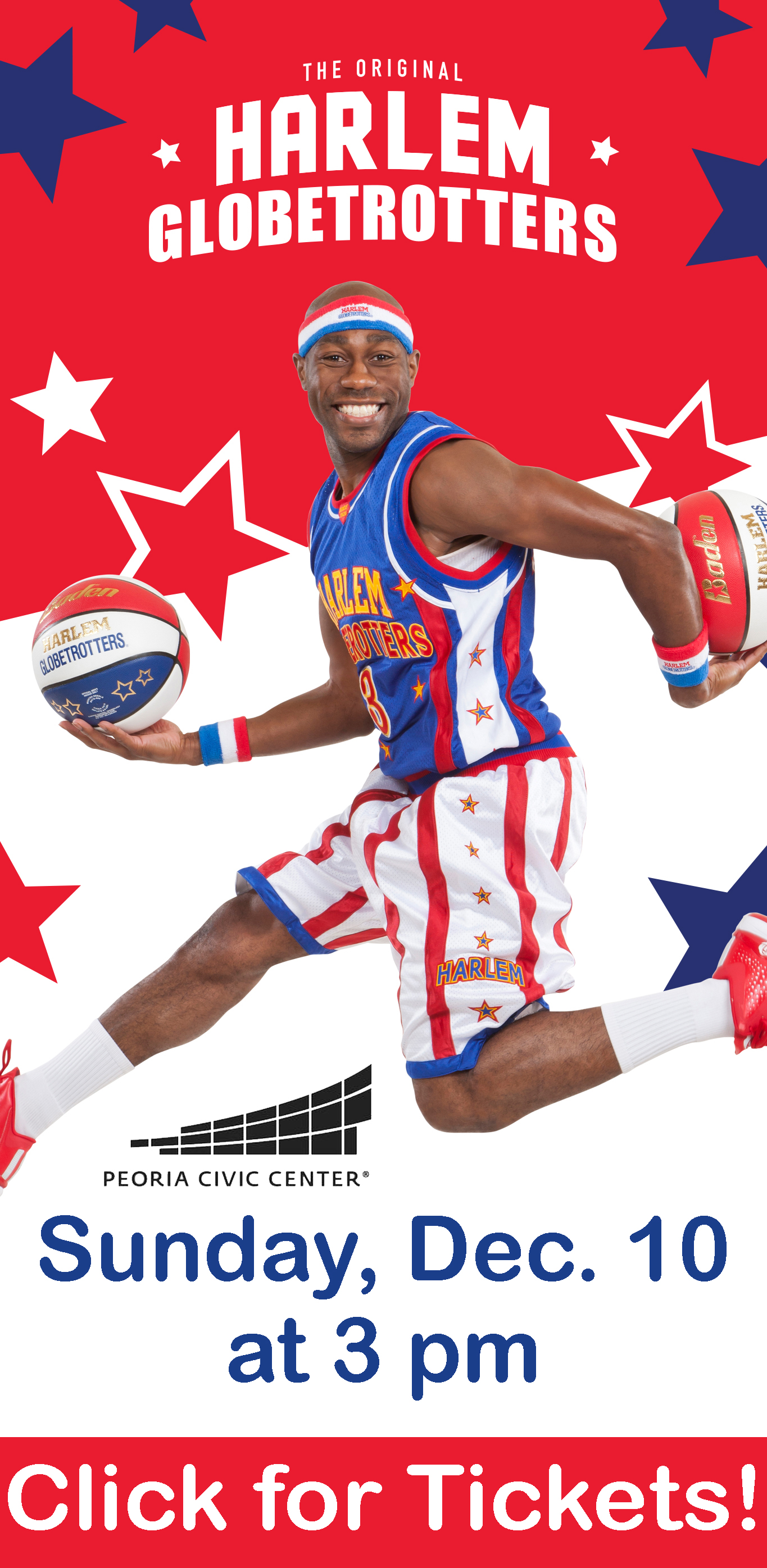 Globetrotters will take on the Washington Generals at the Peoria Civic Center Arena on Sunday beginning at 3 pm. Tickets range from $15 to $93 and are available at the Peoria Civic Center, by calling 800-745-3000 or online at http://ticketmaster.com |