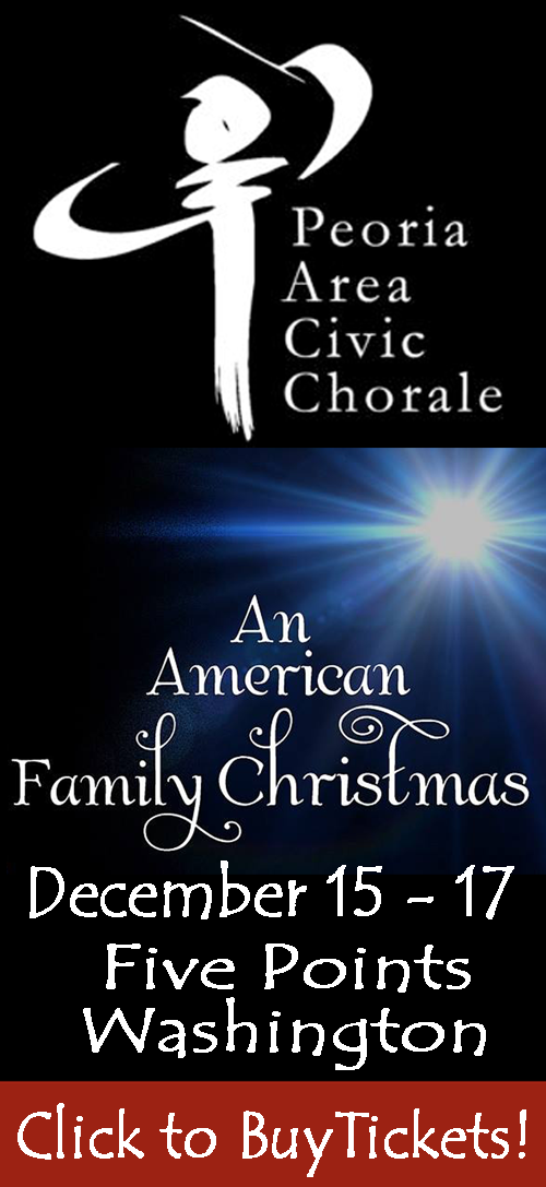 Christmas Magic at the 8th Annual Kristkindlmarkt which will take place at the Lindenhof (located at 7601 N. Harker Drive in Peoria) from 10 am to 5 pm on Saturday and from 11 am to 5 pm on Sunday. Featuring over 25 area vendors offering a variety of arts and crafts perfect for Holiday gift giving as well as baked goods plus imported items from Germany and Austria and a visit from Kristkindl (Santa Claus). Hosted by the Harmonie-Concordia Singers of the Peoria German-American