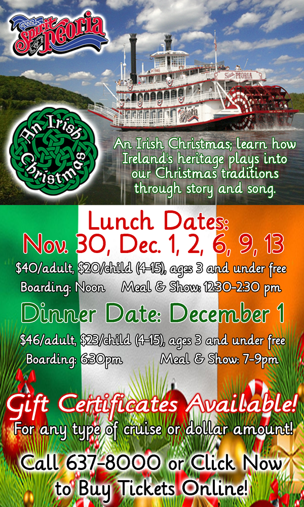 Enjoy an Irish Christmas Holiday Cruise on the Spirit of Peoria!