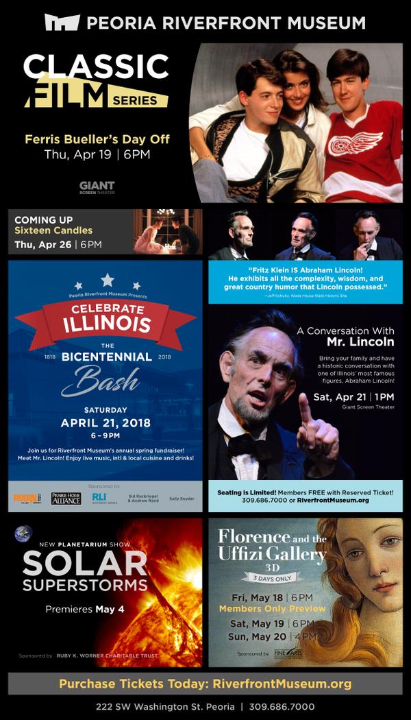 Ferris Bueller’s Day Off on Thursday at the Peoria Riverfront Museum Giant Screen Theater!