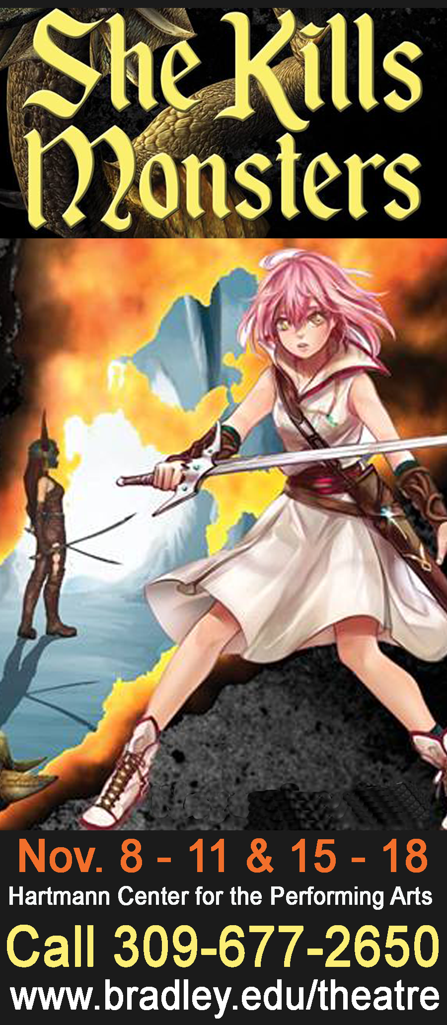 Bradley University at the Hartmann Center for the Performing Arts on the Bradley Campus tonight (Thursday), Friday & Saturday at 7:30 pm and Sunday at 2 pm. Tickets are $18 for adults, $16 for seniors, and $8 for students and are available at the Hartmann Center Box Office, by calling 309-677-2650 or online at http://theatre.bradley.edu |