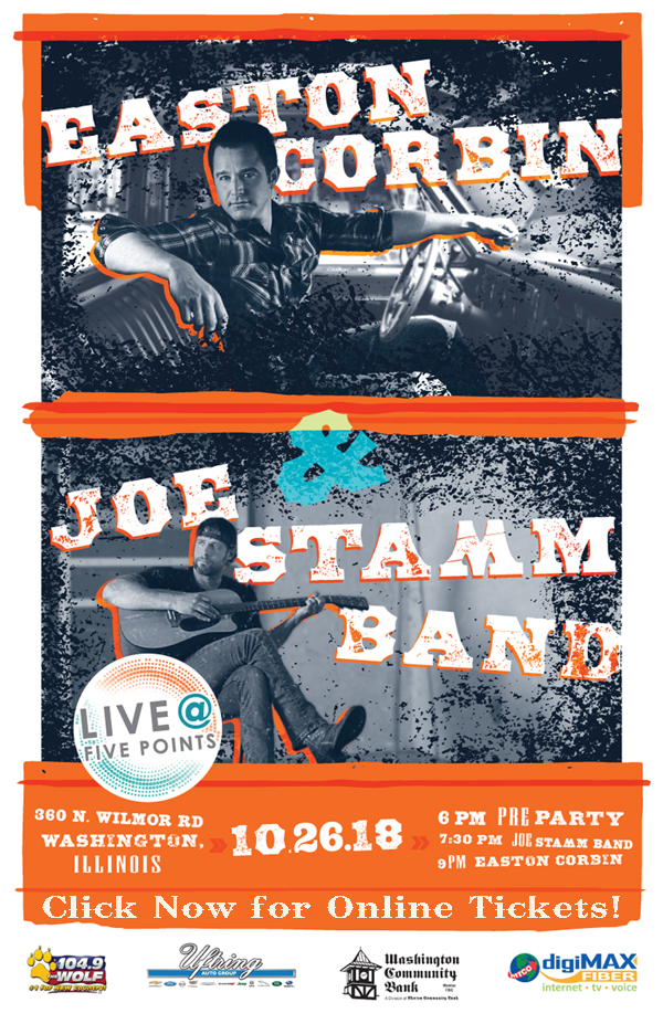 Easton Corbin with Joe Stamm Band on Friday, October 26 at Five Points Washington!