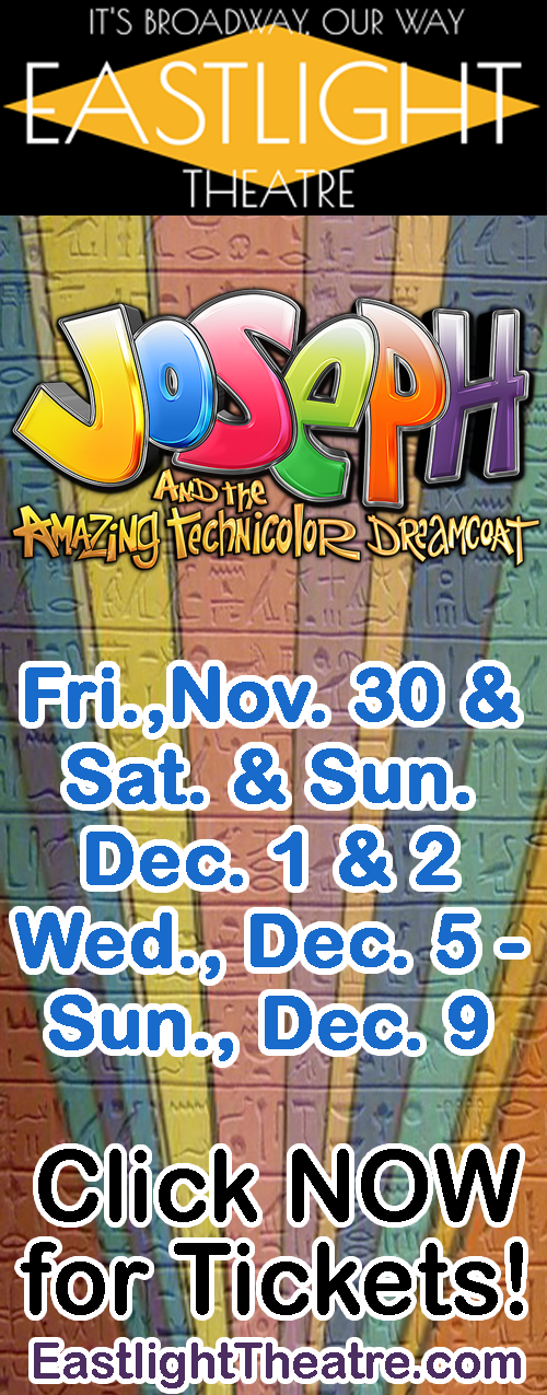 Joseph and the Amazing Technicolor Dreamcoat continues at Eastlight Theatre beginning at 7:30 pm tonight (Thursday), Friday & Saturday and at 2 pm on Sunday. An annual tradition, this is its 28th year on Eastlight’s stage. The Andrew Lloyd Webber and Tim Rice musical tells the