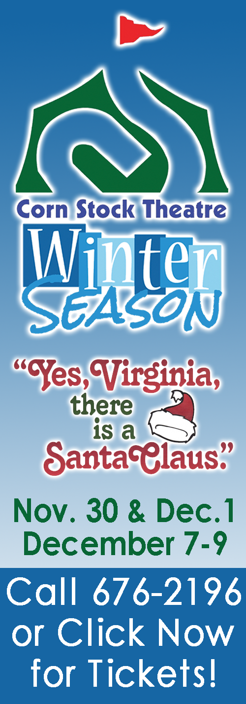 Yes Virginia, There is a Santa Claus continues at Corn Stock Theatre's Theatre Center (Iocated in upper Bradley Park) beginning at 7:30 pm on Friday and Saturday. Tickets are $14 for adults & $10 for students through high school and are available at the Corn Stock box office, by calling