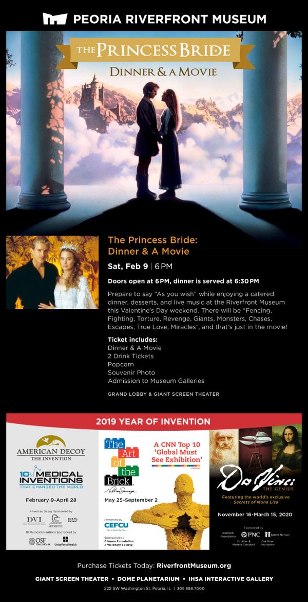 The Princess Bride: Dinner & a Movie at the Riverfront Museum on Saturday!