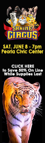 skyline with a Moonlight Cruise on the Spirit of Peoria on Friday from 7:30 - 9:30 pm. Featuring live entertainment and a cash bar, tickets are $23 for adults, $21 for senior citizens 55 and up, and $14 for kids aged 4 - 15 and infants are free. Reservations are not required. For more information, call 309-637-8000 or visit www.SpiritofPeoria.com |
