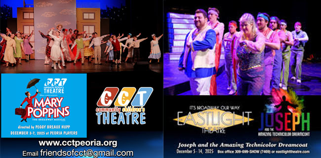 | Our latest Entertainment Reports feature Mary Poppins presented by Community Children's Theatre at Peoria Players running tonight through Sunday and Joseph and the Amazing Technicolor Dreamcoat at Eastlight Theatre running Friday through Sunday and next Wednesday through Sunday. |