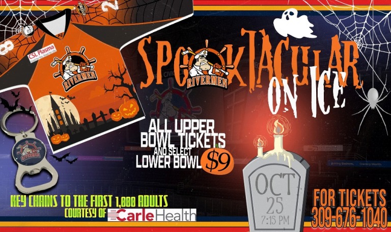 | Catch the team taking on the Fayetteville Marksmen both nights: on Friday, get a magnetic Rivermen season schedule plus find $12 upper bowl and select lower bowl tickets. Saturday is Spooktacular on Ice and includes Rivermen keychains for the first 1,000 adults and $9 upper bowl and select lower bowl seats. |